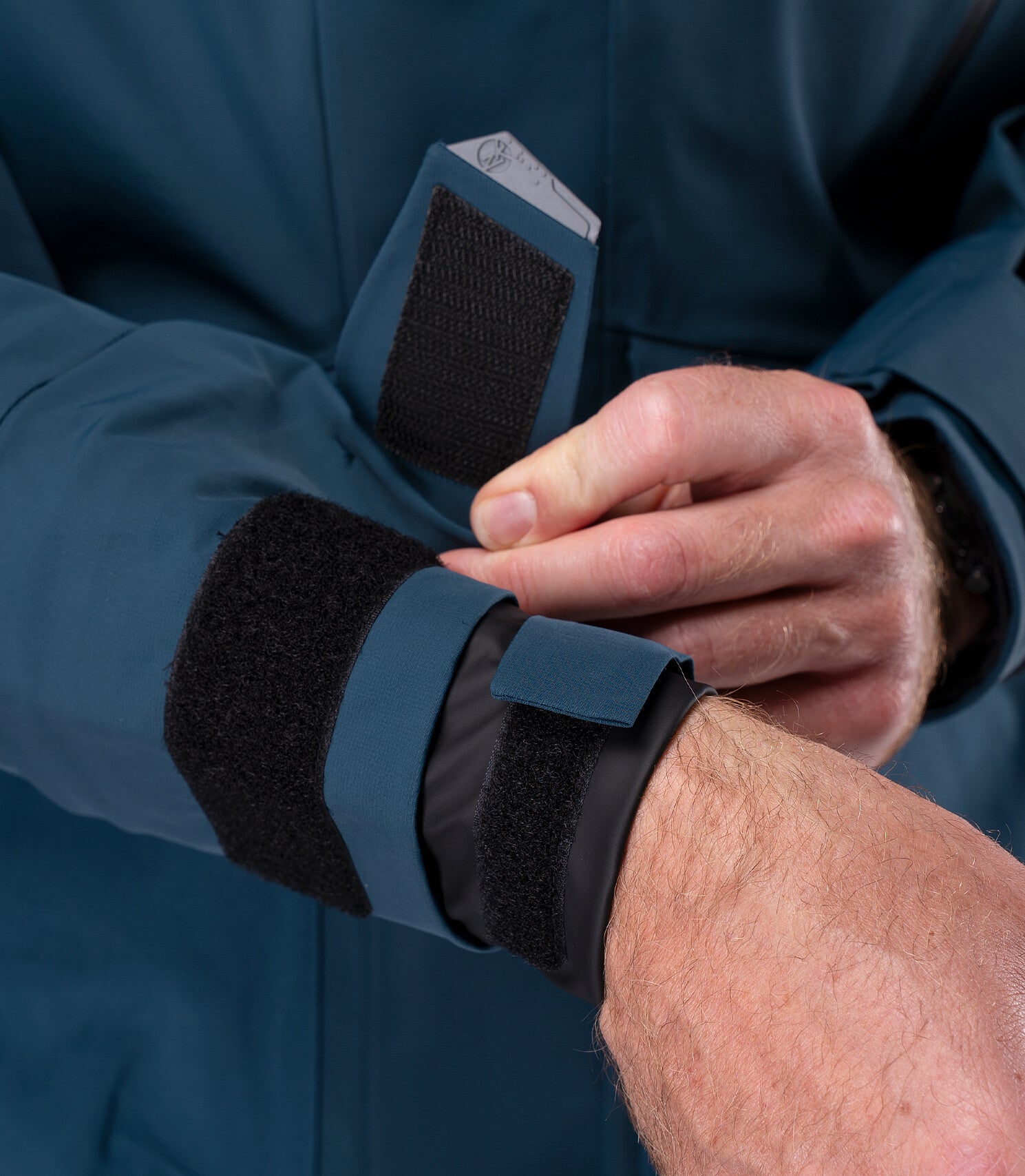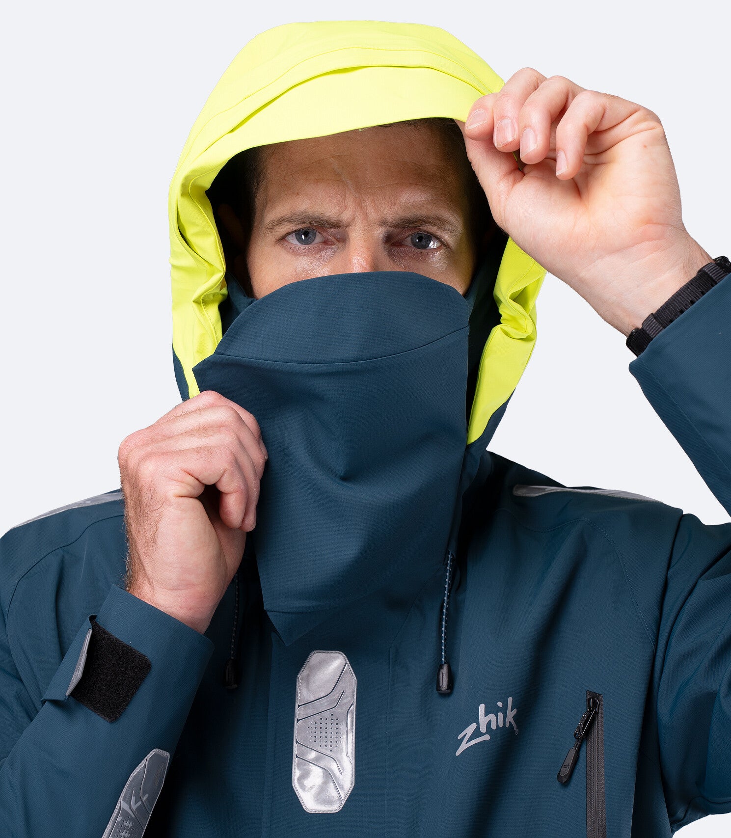 Opbergbare stormcapuchon met klep en 3-punts verstelbare pasvorm